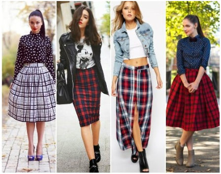 Такие модели можно отнести к нестареющей классике. Ныне актуальны юбки с крупной и мелкой клеткой. Также можно встретить модели с косой клеткой, которая напоминает ромб. Что касается длины, то модными считаются длина миди и мини. Решили приобрести юбку длиной макси? Тогда проявите осторожность, ведь неправильно подобранная юбка может испортить весь образ, сделать его перегруженным и не гармоничным.