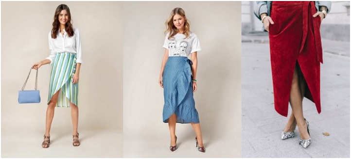 Юбка с запахом идеальный вариант для женщин, фигура которых далека от стандартов идеала. Подобная модель выгодно скроет незначительные изъяны и подчеркнет достоинства фигуры.