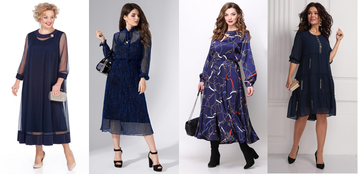 ● Синий. Насыщенный синий цвет универсален – платье такого оттенка остается строгим в любой обстановке, но можно его оживить с помощью различных аксессуаров;