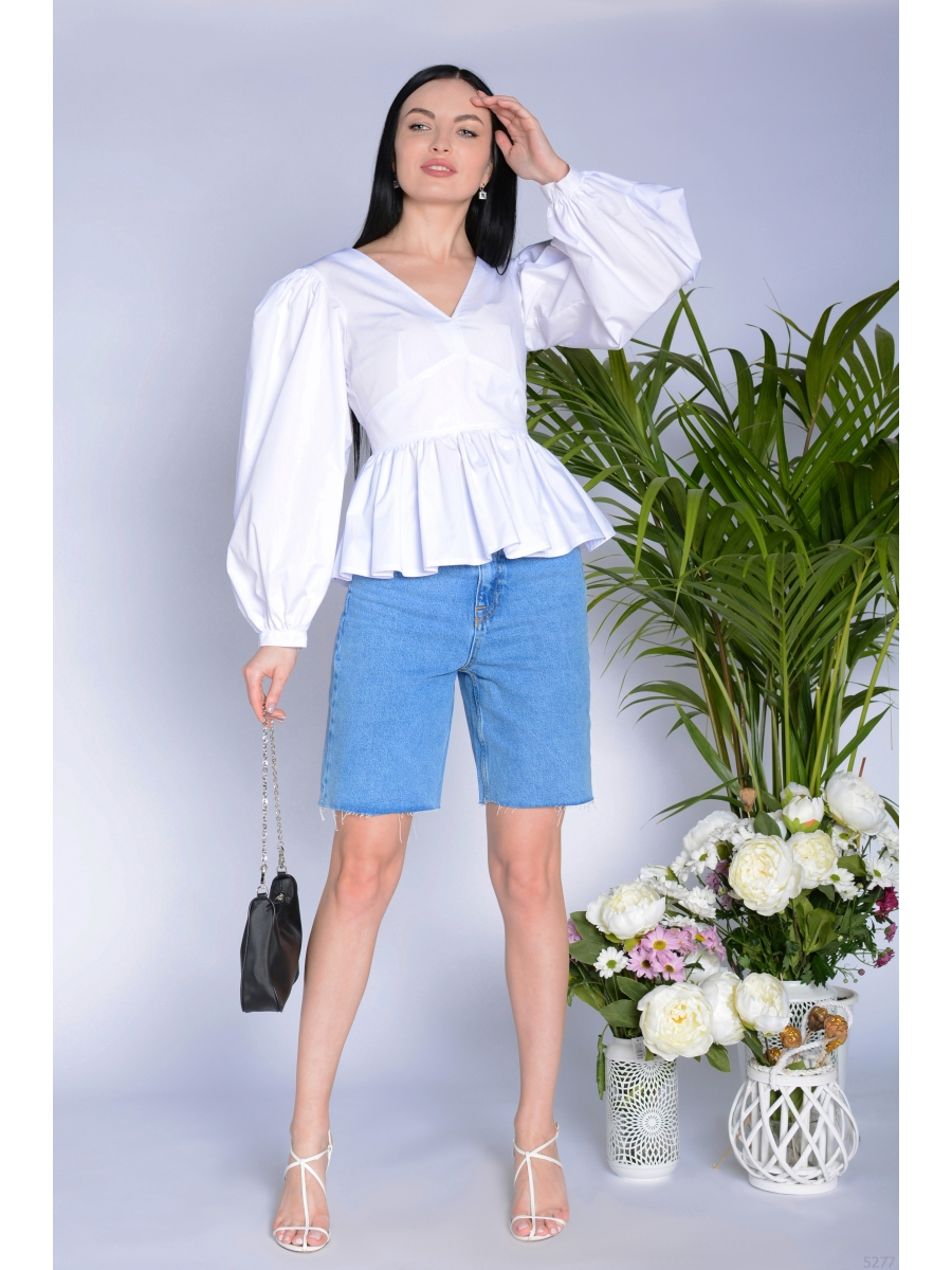 Блузка из легкой ткани с пышными рукавами. Это более сложная вещь, к которой нужно правильно подбирать сочетание. Однако сложные рукава и плечи в тренде, так что такая вещь обязательно должна появиться у каждой истинной модницы.