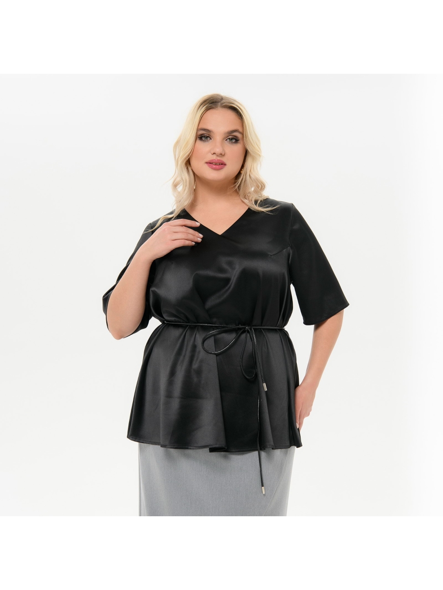 Пояс - шнур из экокожи черного цвета с металлическими наконечниками.