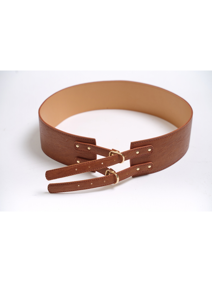 Стильный ремень из экокожи. Состоит из 2-х частей: широкой, основной части (ширина 8 см) и пристроченных к ней с двух сторон узких хлястиков (по 2 с каждой стороны).