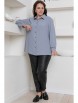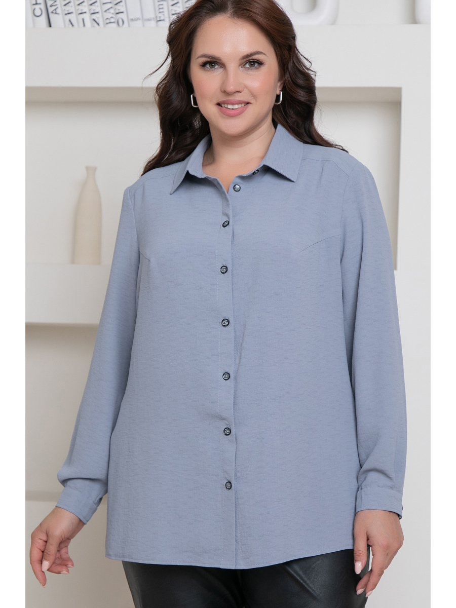 Блуза женская прямого силуэта с разрезами в боковых швах . Перед по центру с застежкой на петли и пуговицы. Спинка с двойной кокеткой. Рукав втачной, длинный, по низу на притачной манжете, застегивающейся на петлю и пуговицу. Воротник на стойке, застегивающейся на петлю и пуговицу.