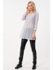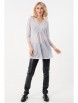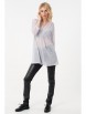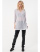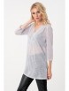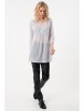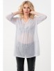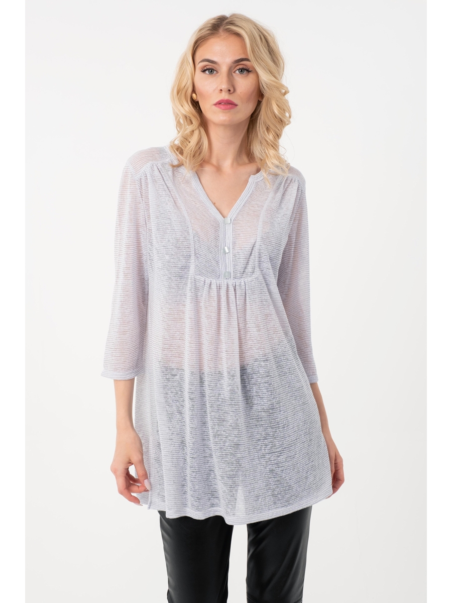 Нежный джемпер-туника прямого силуэта из трикотажного полотна белого цвета. Фигурный вырез изделия обработан окантовкой переходящей в планку, украшенную пуговичками. Джемпер-туника с втачными рукавами три четверти. Передняя часть джемпера-туники дополнена складками, в боковых швах изделия разрезы.