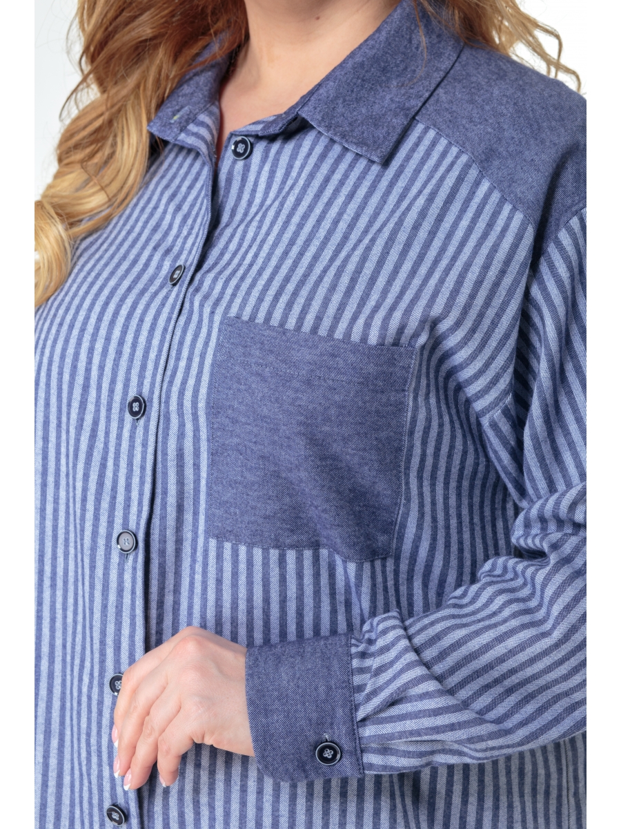 Удлинённая блуза. Выполнена из хлопка высокого качества в принт «полоска и однотон». Блуза прямого свободного силуэта со спущенными рукавами на манжетах, отложной воротник на стойке. Функциональная застёжка на пуговицы по всей длине.