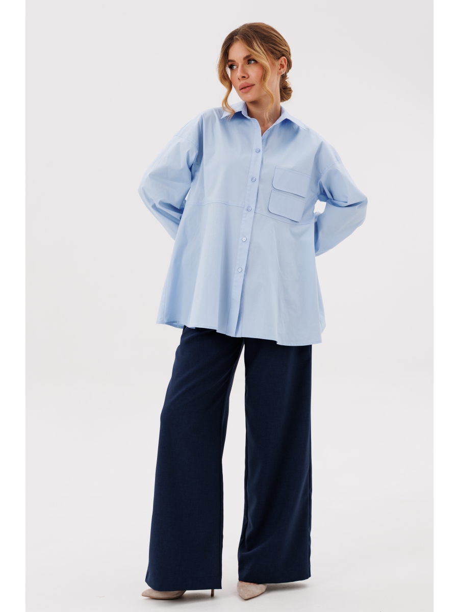 Оформить заказ →Рубашка женская А-силуэта отрезная по линии талии. По переду слева декоративные клапаны. Рукав длинный на манжете. Низ фигурный.