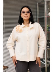 Блузка женская с акцентным декором полуприлегающего силуэта. Рукав "летучая мышь" с подрезом по линии проймы и односторонними складками и манжетой. Застежка-планка на петли и пуговицы. Воротник стояче-отложной. В качестве декора - дополнительный воротник, плавно переходящий в цветок. Благодаря своему крою станет базовой вещью в вашем гардеробе. Легко сочетается с любыми брюками, юбками, платьями и джинсами. Позволит создать большое количество образов для офиса, прогулок, праздничных мероприятий.