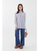 Рубашка женская, прямого силуэта, длина ниже бедра. Спущенное плечо, рукав длинный, низ на фигурном манжете. Горловина обработана воротником на стойке. По переду застежка на петли пуговицы, слева нагрудный фигурный накладной карман, небольшие разрезы в боковом шве снизу. По спинке кокетка.