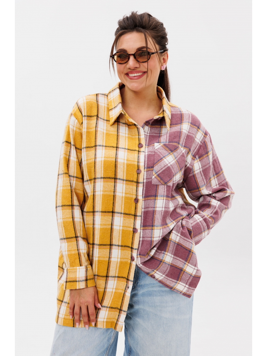 Выполненная из двух контрастных клетчатых оттенков, словно составленных из блоков конструктора, рубашка станет ярким дополнением к любому гардеробу. Ее мягкая, теплая ткань дарит комфорт даже в пасмурные дни, а её стиль поднимает настроение в любую погоду.