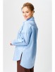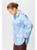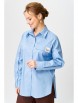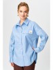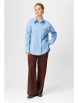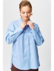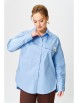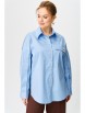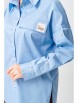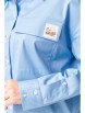 Рубашка прямого силуэта из хлопковой ткани. Перед с центральной застежкой. Воротник на стойке. На правой части рубашки сверху настрочен карман с клапаном. Спинка с кокеткой и складкой в нижней части. Рукав втачной рубашечного кроя с застежкой на петли и пуговицы. Низ рукава со складками и на манжете с застежкой на 2 петли и пуговицы. Низ рубашки фигурный, по бокам разрезы. На клапане настрочена декоративная нашивка.