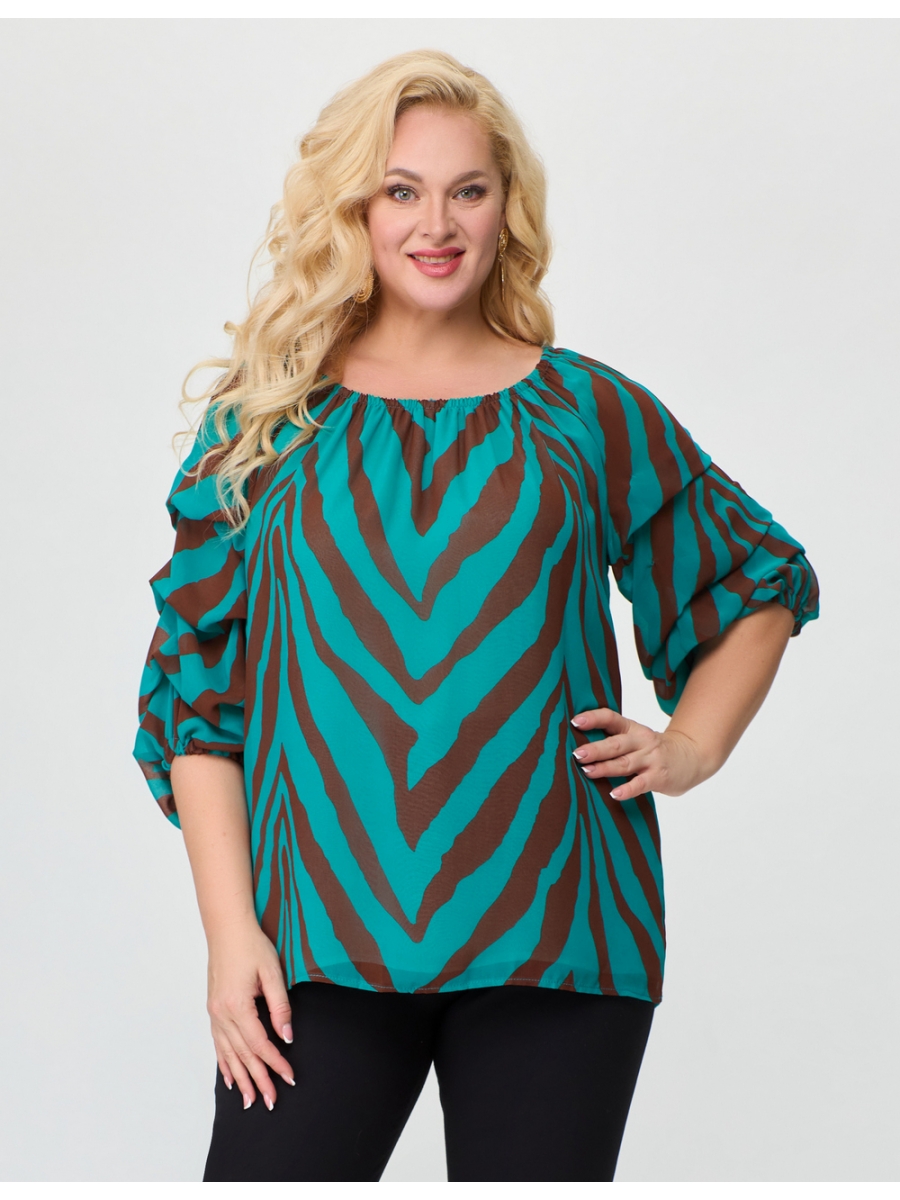 Блузка женская свободного кроя, с рукавом реглан, со сборкой по горловине. Рукав объемный, драпированный мягкими складками. Низ рукава и вырез горловины присобран на эластичную тесьму.