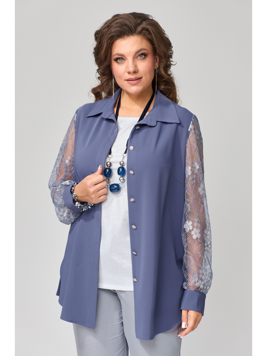 Оформить заказ →Блузка нарядная "СМЕДА" прямого силуэта. Полочка с застежкой на петли и пуговицы, на груди выточка, на спинке отрезная кокетка и бантовая складка. Воротник в блузке отложной рубашечного типа, на стойке. Низ рукава обработан манжеткой на застежку на петли и пуговицы. Рукав в блузке кружевной.