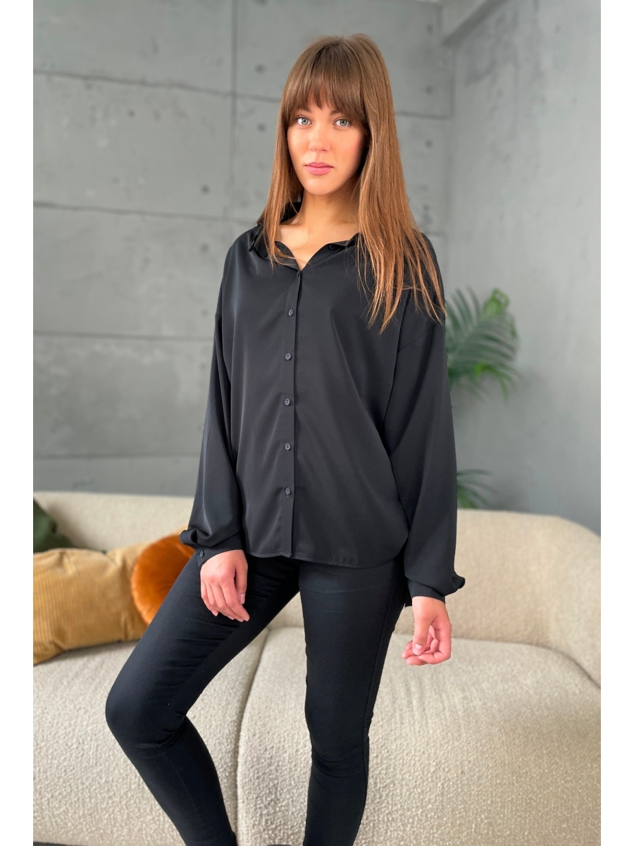 Блузка женская из текстильной ткани, прямого силуэта. В боковых швах расположены разрезы. Спинка блузы длиннее переда. Рукав одношовный,низ рукава обработан манжетой на петлях-поговицах. Вырез горловины обработан воротником со стойкой, по переду горловины сборка. Застежка блузы на петлях-пуговицах.