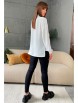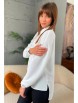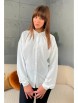 Блузка женская из текстильной ткани, прямого силуэта. В боковых швах расположены разрезы. Спинка блузы длиннее переда. Рукав одношовный,низ рукава обработан манжетой на петлях-поговицах. Вырез горловины обработан воротником со стойкой, по переду горловины сборка. Застежка блузы на петлях-пуговицах.