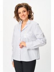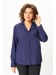 Блузка женская из хлопковой ткани, прямого силуэта с втачным рукавом. Линия плеча слегка спущена. Застежка центральная на петли и пуговицы. Воротник отложной с лацканами. Перед с вытачками по линии груди. По левой части переда накладной карман с отделкой. Рукав длинный рубашечный, по низу притачная манжета с застежкой петли и пуговицы. Линия низа фигурная.