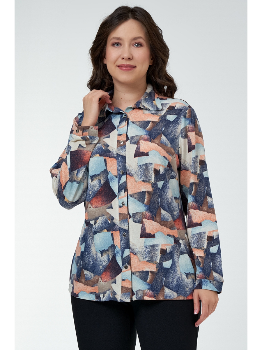 Повседневная блузка большого размера, прямого кроя выполнено из плотного трикотажного полотна на пуговицах с манжетами.
