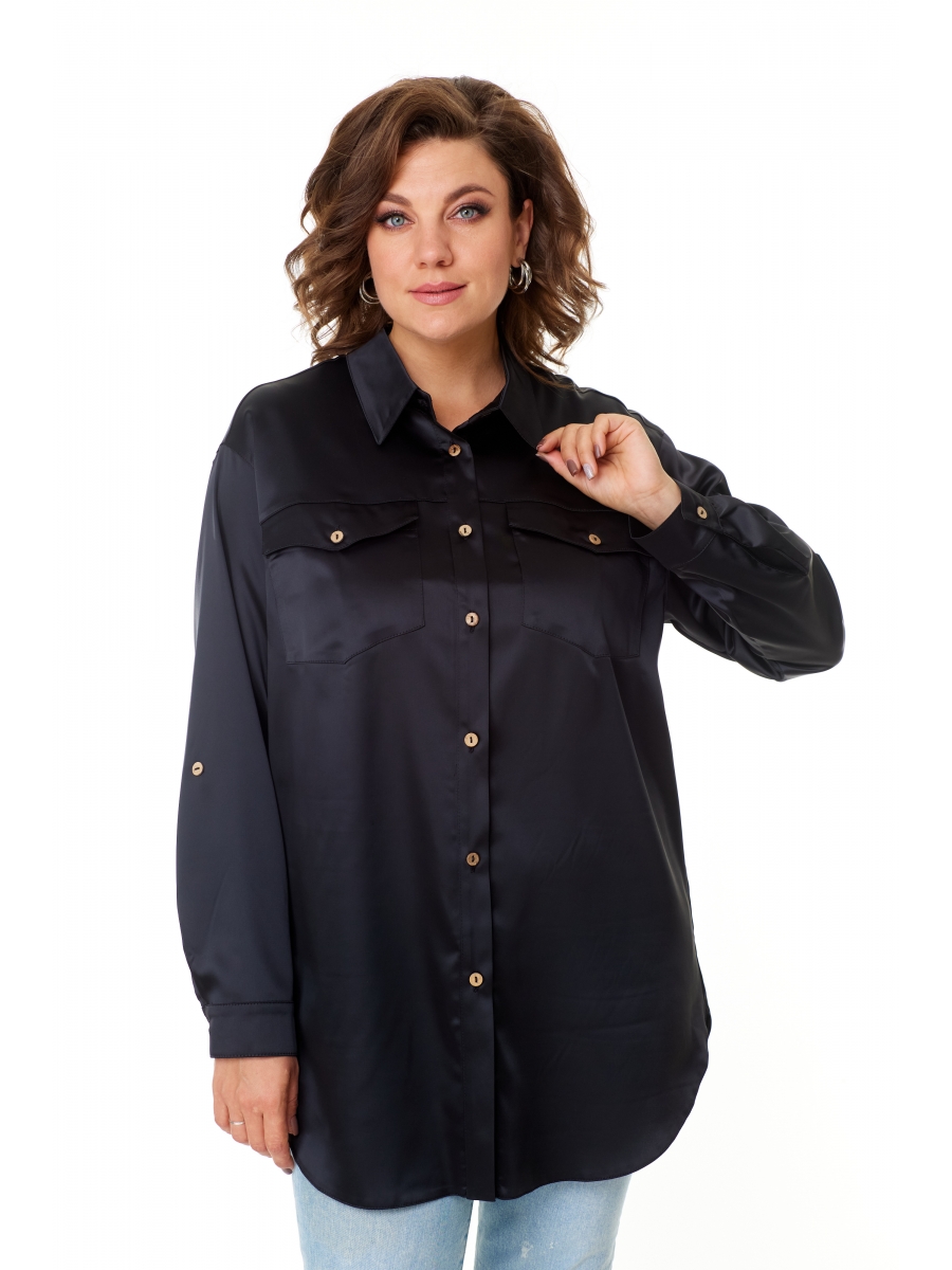 Стильная женская повседневная рубашка-оверсайз в насыщенно-черных тонах из высококачественного русского атласа станет прекрасным дополнением вашего гардероба. Свободный крой и классический воротник придают образу элегантность и женственность. Застёжка по переду на петли и оригинальные пуговицы с имитацией дерева добавляет шарм и делает рубашку ещё более привлекательной. Карманчики функциональные с клапанами на передних половинках рубашки также застёгиваются на пуговицы, обеспечивая удобство и функциональность. Рукава одношовные полуспущенные с манжетами внизу и застёжкой на пуговицы позволяют экспериментировать с образом, добавляя оригинальности и неповторимости. Паты в рукавах дают возможность носить рубашку разными способами, что делает её ещё более универсальной.