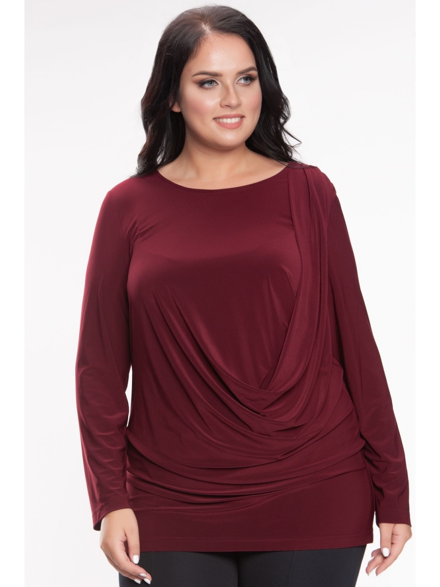 Блуза прямого силуэта из трикотажного полотна. Круглая горловина, рукав втачной, длинный. Перед с ассиметричной драпировкой, уходящей на плечо.