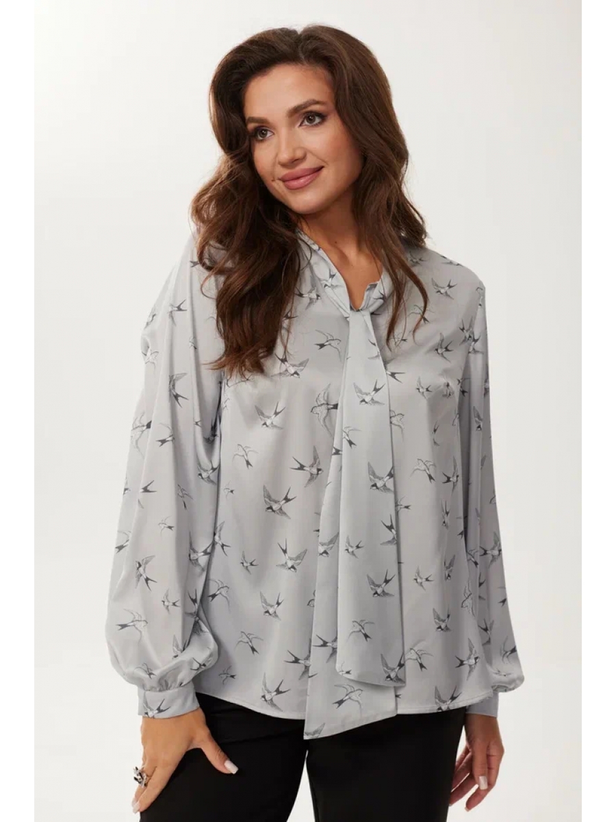 Нарядная блузка из атласной ткани. Блуза из лёгкой струящейся ткани. Горловина круглая с воротником- галстуком. Длинный втачной рукав со сборкой, на манжете"