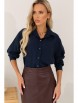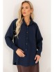 Рубашка из вискозной ткани с крэш-эффектом. Свободный силуэт с застёжкой на планке. Низ изделия асимметричной длины (спинка удлинена относительно переда) с закруглениями по бокам и разрезами. Рубашечный рукав на манжете с застёжкой на пуговицы. Вырез горловины обработан отложным воротником на стойке. На задней части изделия выполнена кокетка с небольшой складкой. На передней-накладной карман в области груди. Достоинство этой модели в способности скрыть некоторые недостатки фигуры. Её можно сочетать как с брюками, так и с джинсами