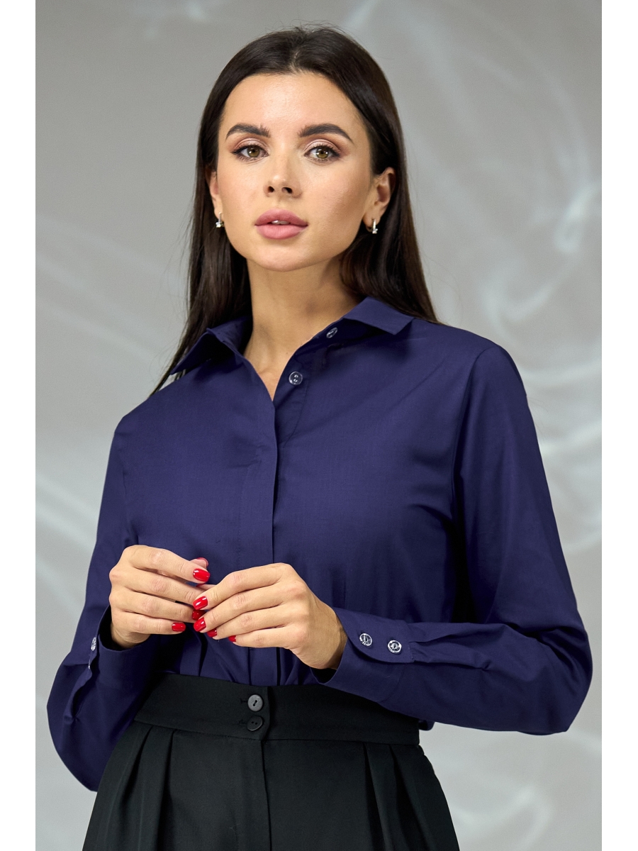Оформить заказ →Женская блуза из натуральной ткани свободного силуэта. Перед с центральной потайной застежкой. Спинка с кокеткой. Горловина обработана воротником со стойкой. Рукав длинный, прямой на манжете. Манжета с застежкой на 2 петли пуговицы.