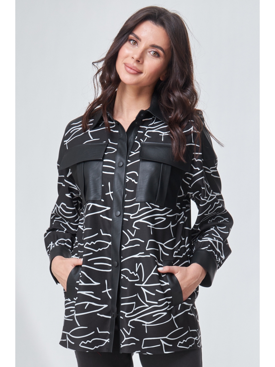 Черная с белым принтом блузка - идеальный вариант повседневного образа. Блузка из качественной принтованной ткани с модными элементами из экокожи создаст приятные к телу ощущения, подчеркнет стиль, а также станет отличной альтернативой классическим рубашкам.