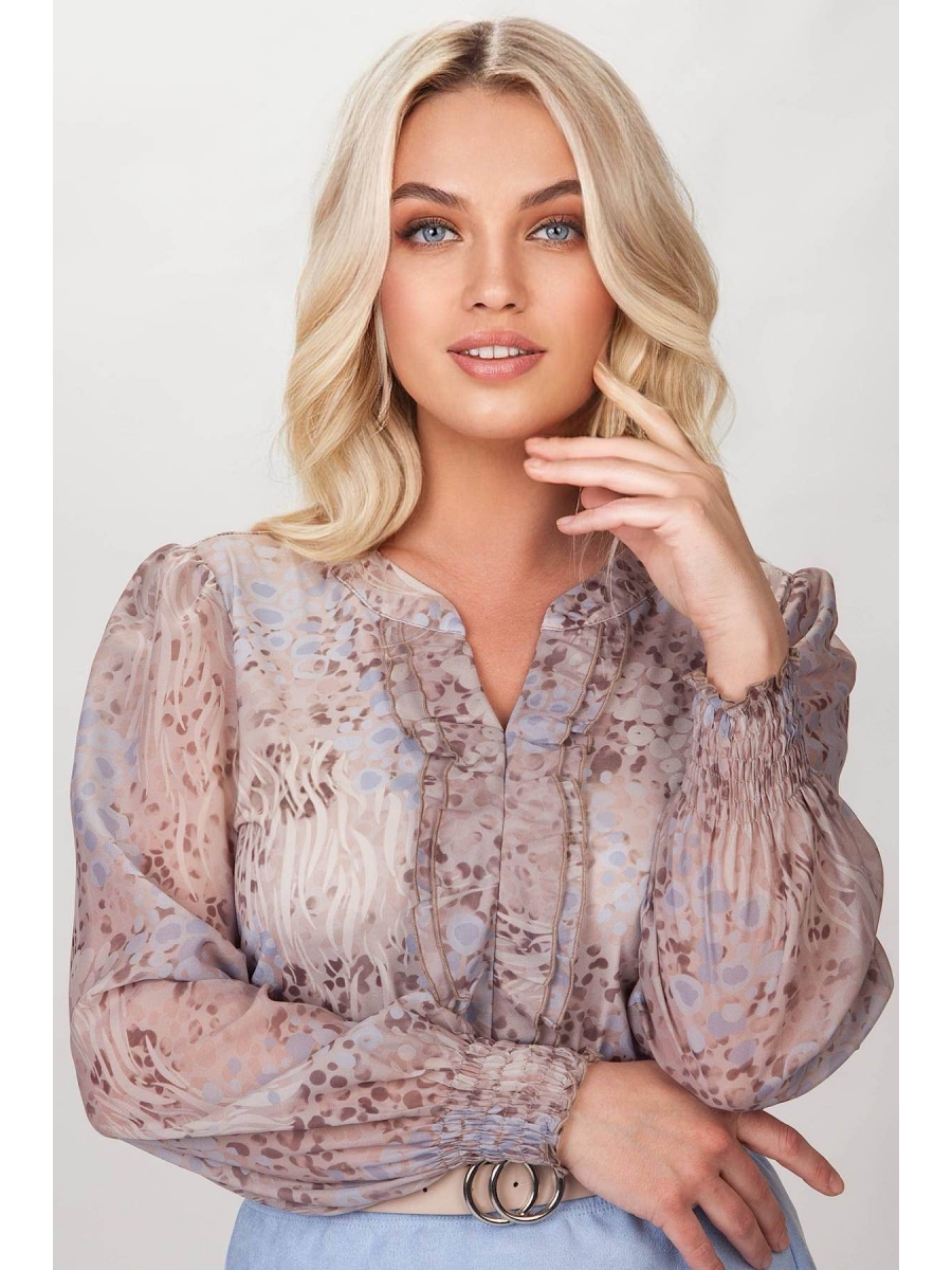 Блузка выполнена из трикотажного полотна, рукав - шифон, на манжете. Элегантно смотрится, легко стирается, не теряет и не меняет цвет. Рукава на широком, расстрочным ниткой-резинкой, манжете. Воротник-стойка расстроченная ниткой-резинкой, что обеспечивает мягкое прилегание к шее с зявязкой спереди. Блуза прямого покроя отлично садится на любой типа фигуры. Так как в ткани используется большое количество вискозы, ткань дышащая и легко пропускает воздух, сохраняет форму и посадку даже после многочисленных стирок. Блуза представлена в ярких, современных и модных расцветках. Блузка станет неотъемлимой частью Вашего образа. Блуза прекрасно подходит для торжеств и повседневных мероприятий. Сочетайте блузу с брюками, юбками, и с любым типом обуви. Блузка бренда RISE - это стиль, качество и комфорт!