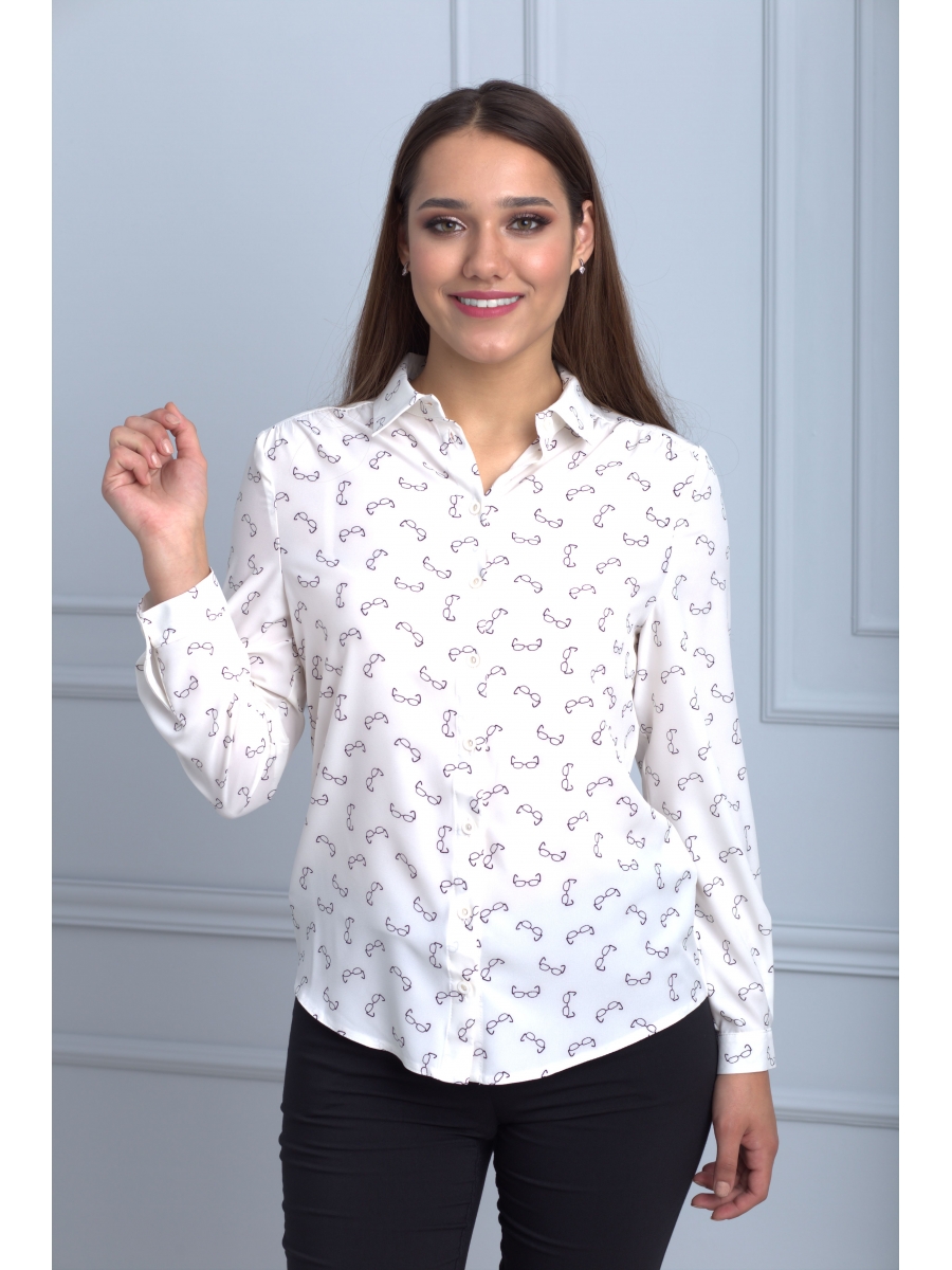 Блуза классического кроя. Застежка пуговицы по переду блузы.