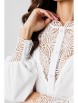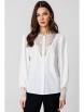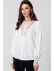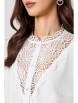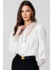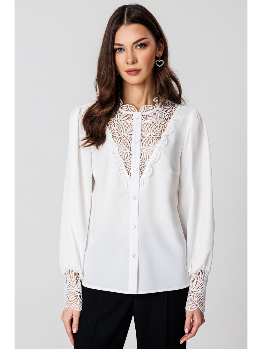 Блузка женская, полуприлегающего силуэта. Перед с нагрудными вытачками и центральной бортовой застежкой, выполненной из кружева. Спинка цельная. Горловина блузы с притачной стойкой из кружева. Рукав втачной со сборкой по окату и низу. Низ рукава с притачной манжетой из кружева, застегивающийся на 2 петли и пуговицы.