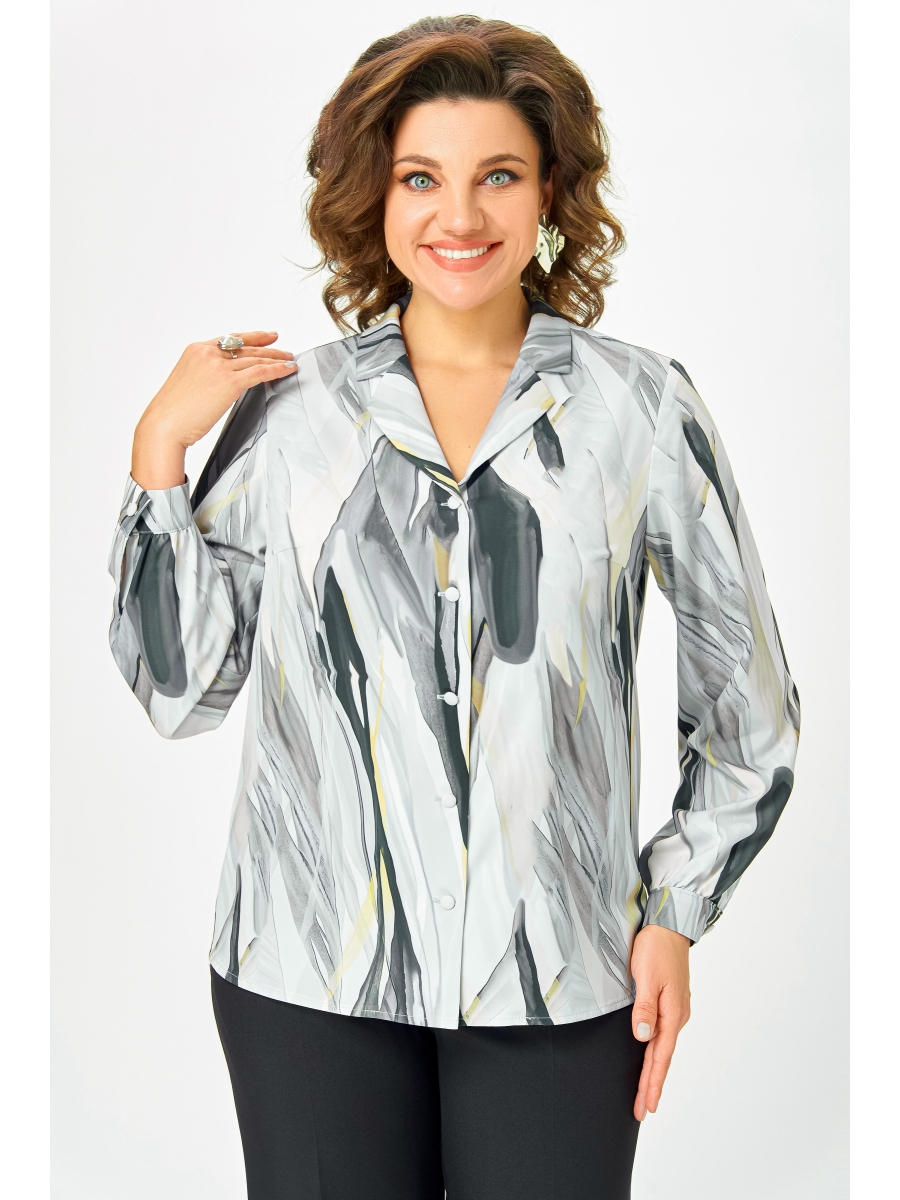 Оформить заказ →Блузка женская из мягкой вискозной ткани, прямого силуэта с центральной застёжкой на петли и декоративные пуговицы. По переду обработаны нагрудные вытачки, спинка цельная. Воротник пиджачного типа с отложными лацканами. Рукав втачной, одношовный длинный, внизу со сборкой и манжетой, которая застёгивается на петлю и пуговицу.