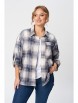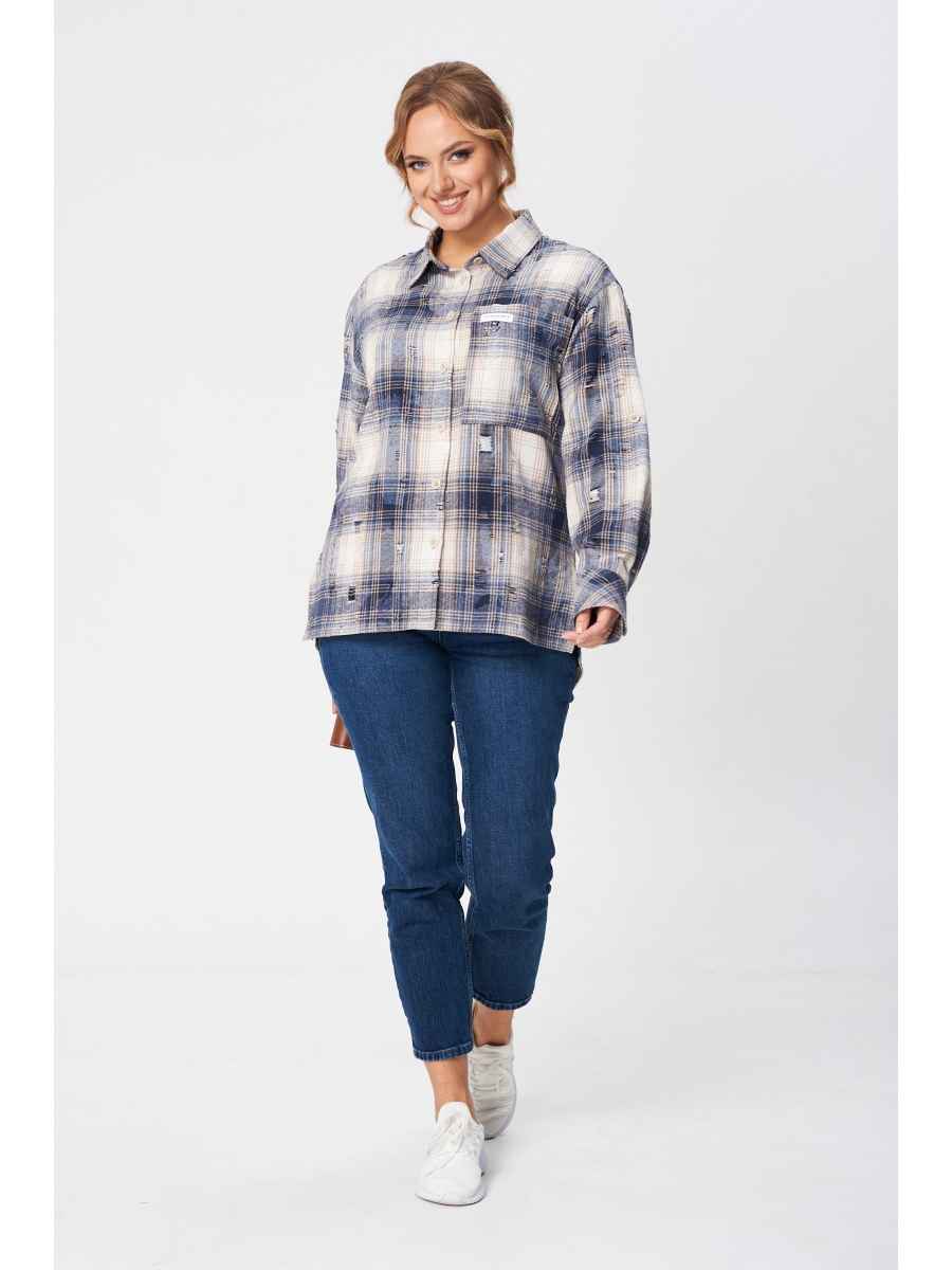 Рубашка женская прямого силуэта в стиле гранж, выполнена из ткани с перфорацией. По переду цельнокроенная планка с застежкой на петли и пуговицы, накладной карман. По спинке отрезная кокетка. Рукав втачной, двухшовный, длинный, с манжетой по низу, с хлястиком для регулирования длины рукава. Воротник рубашечный на отрезной стойке.