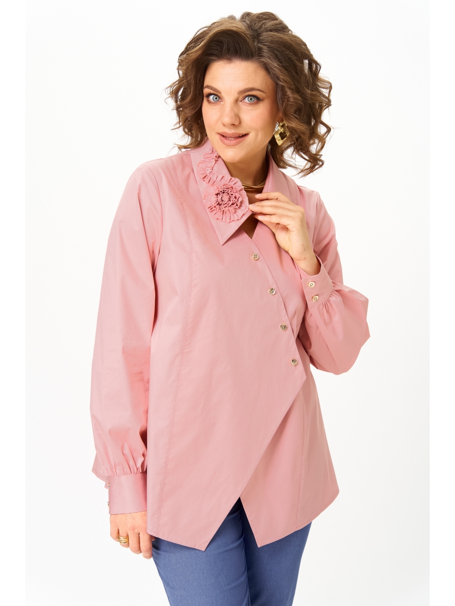 Блузка выполнена в нежном цвете, подчеркивающем элегантность и изысканность вашего образа. Модель в фирменном стиле Michel Chic сочетает комфорт хлопковой ткани и изысканность деталей.