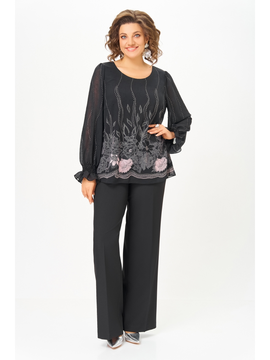 Оформить заказ →Блузка А-силуэта из нежной шифоновой ткани с лёгким эффектом «жатки», на подкладке из шифона. Полочка с нагрудными выточками, спинка без особенностей. Горловина круглая. Рукав втачной длинный по окату со сборкой, в нижней части собран на эластичную нить, которая внизу образует рюшу высотой 6 см.