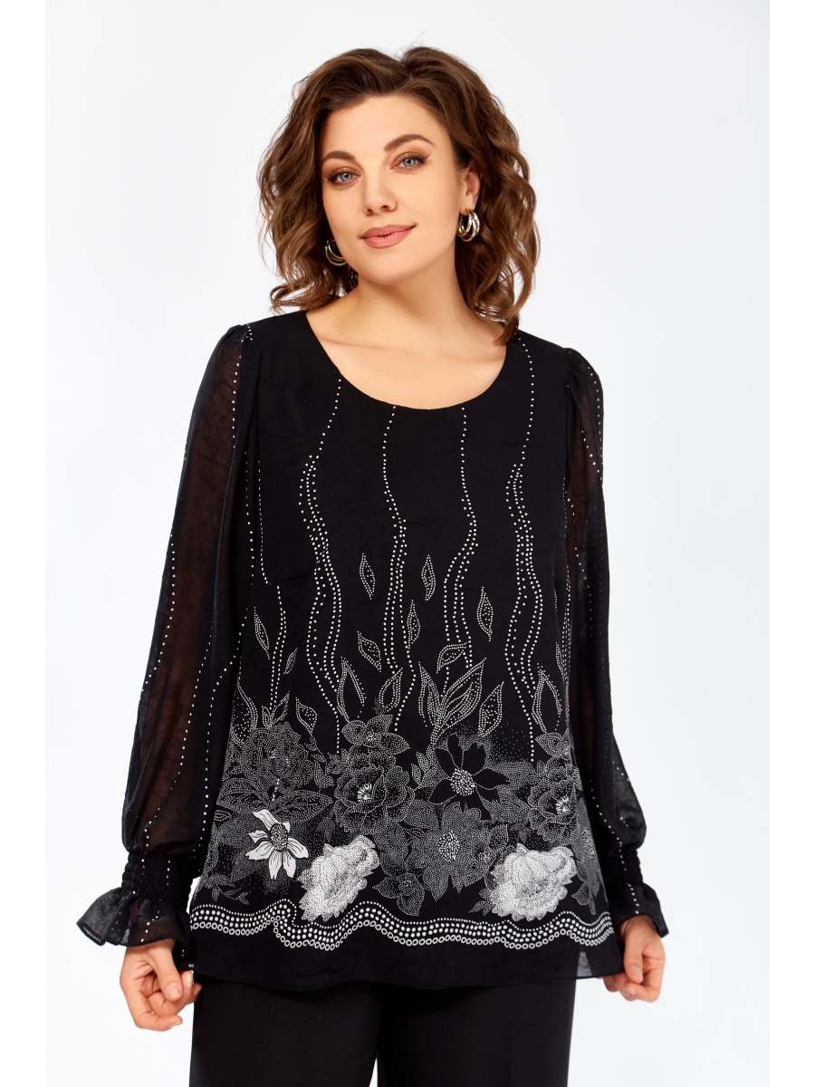 Оформить заказ →Блузка А-силуэта из нежной шифоновой ткани с лёгким эффектом «жатки», на подкладке из шифона. Полочка с нагрудными выточками, спинка без особенностей. Горловина круглая. Рукав втачной длинный по окату со сборкой, в нижней части собран на эластичную нить, которая внизу образует рюшу высотой 6 см.