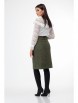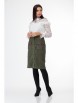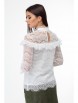 Прямой силуэт и красивые конструкторские элементы: отрезные кокетки по переду и спинке подчеркнуты воланом, воротник-стойка с отделкой из кружева, втачные рукава с королевскими манжетами. Застежка по стойке сзади на пуговицы с навесными петельками. Перед и спинка от линии кокеток выполнены с наложением кружева на блузочную ткань в идеальном цветовом решении.