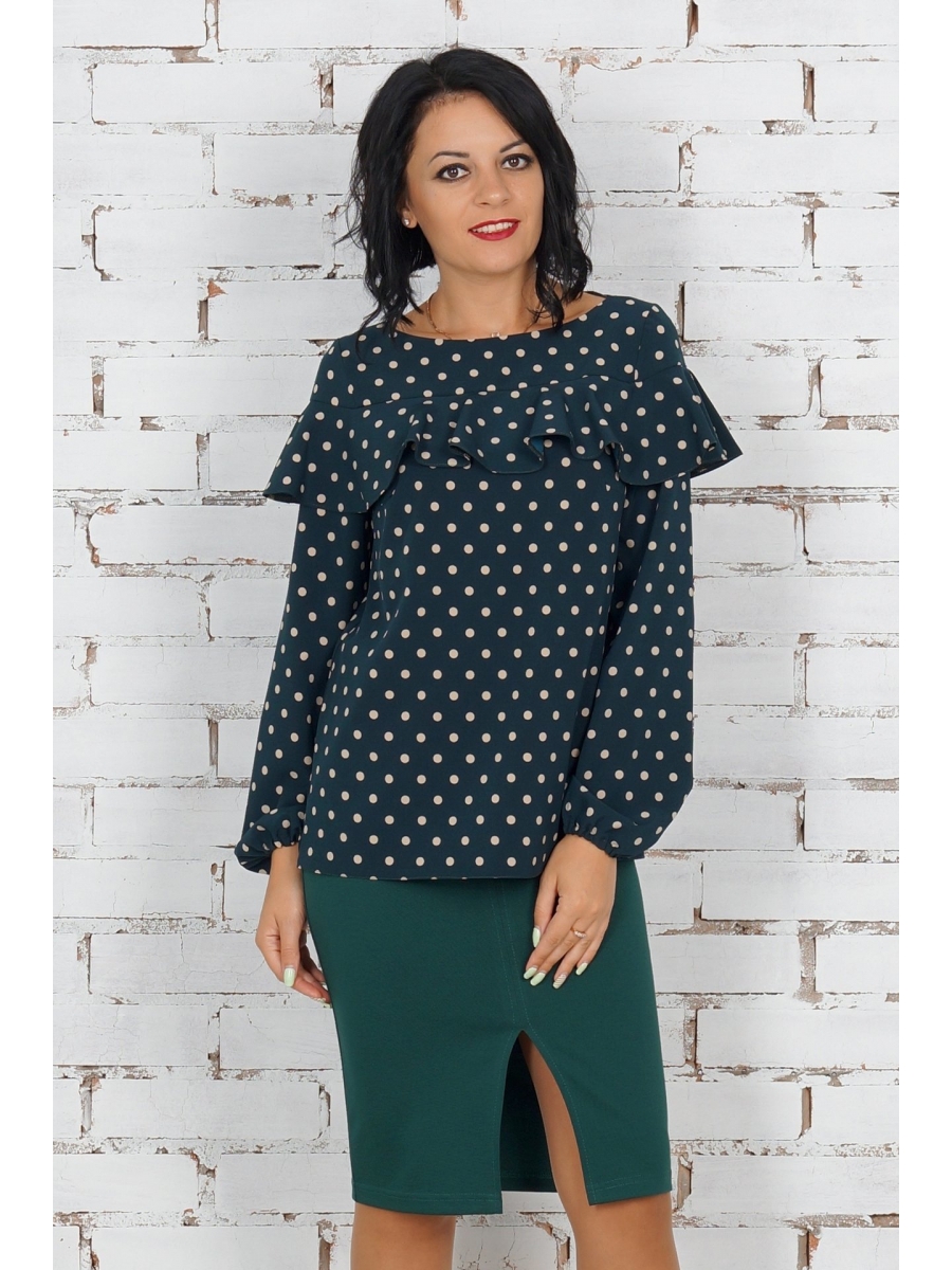 Красивая блуза с воланом по груди из эластичной блузочной ткани.