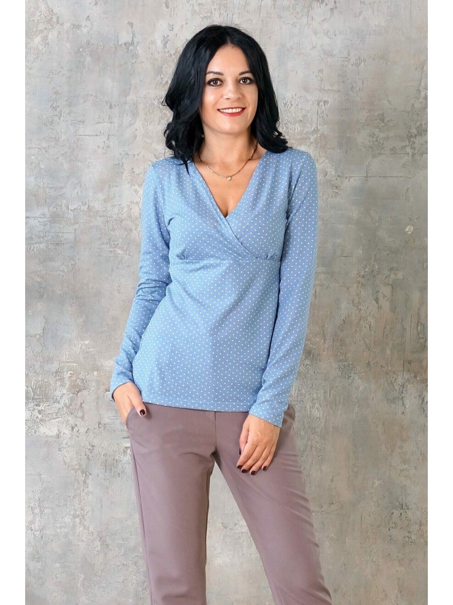 Расцветка белый горох на голубом. Вырез на запах.