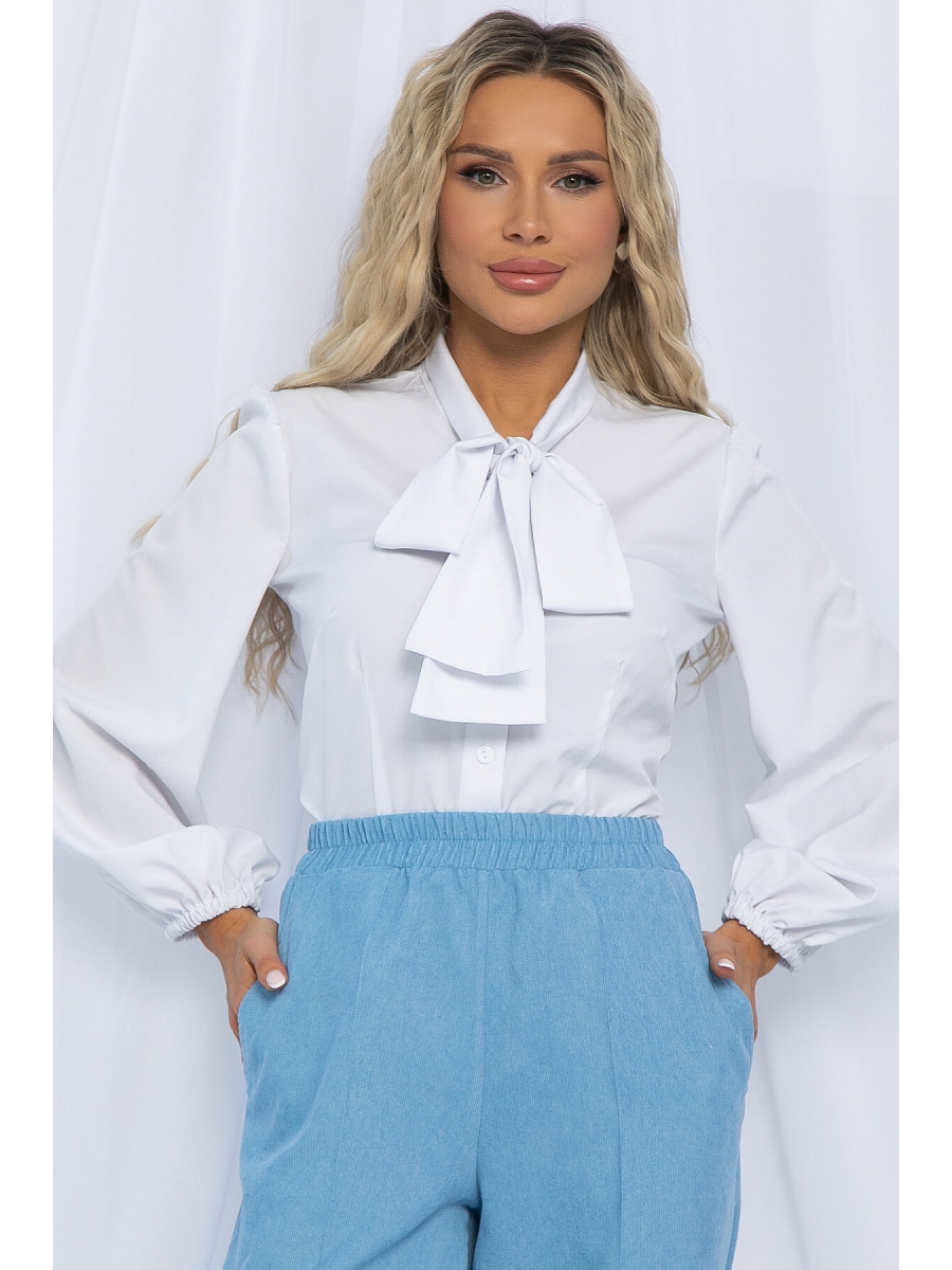 Привнесите в свой гардероб изысканность и универсальность с помощью этой утончённой блузы. Ключевым элементом дизайна является воротник-галстук, который придаёт образу нотку романтики и элегантности. Блуза легко сочетается как с классическими брюками, так и с юбками, что делает её подходящей для различных ситуаций — от деловых встреч до романтических ужинов. С этой блузой вы всегда будете выглядеть стильно и привлекательно.