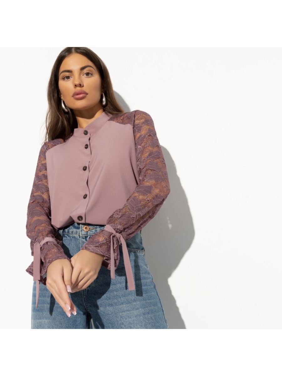 По фотографиям трудно определить ваш возраст. Даже одежда не выдаст год запечатления, ведь ваши образы вне времени. Увидев на вас блузу в цвете пыльной розы с прозрачным кружевом, дочка попросит её поносить. Блуза свободного кроя. Чуть спущена линия рукава, его длину регулируют завязки. Изделие можно носить навыпуск или заправлять.