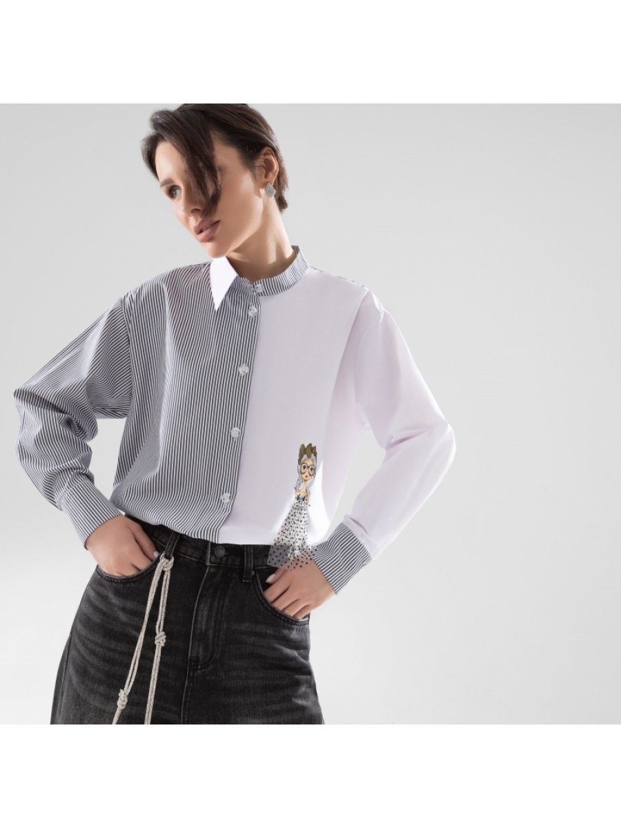 Деловой дресс-код с нетривиальным акцентом. Рубашка CHARUTTI создана как арт-объект. Уникальность в авторском принте. Будьте произведением модного искусства, носите CHARUTTI. Рубашка свободного кроя, в составе хлопок высшего качества. Комбинация материалов. Изделие застегивается на пуговицы. Принт напечатан на ткани и дополнен объемным декором.