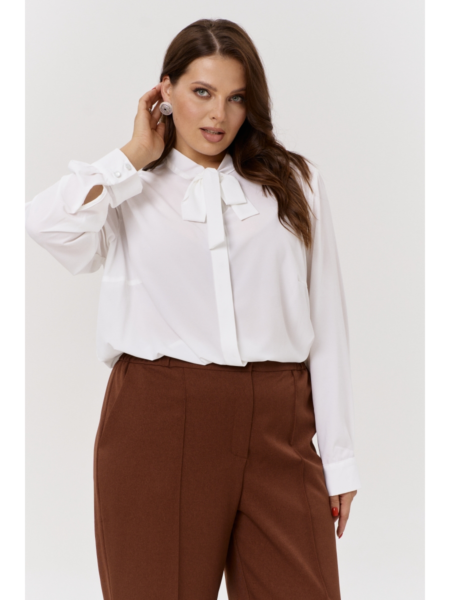 Блузка женская классическая - это универсальный предмет гардероба девушки. Блузка свободного силуэта. Воротник со стойкой и завязками на горловине. Рукав втачной, одношовный, внизу на манжете, с застежкой на петлю-пуговицу. Внизу по боковым швам обработаны разрезы. Полочка со скрытой застежкой на петли-пуговицы. По спинке – кокетка. Белая рубашка считается эталоном стиля. Рубашка – это элемент одежды в любое время года и по любому случаю. Ткань эластичная, струящаяся.