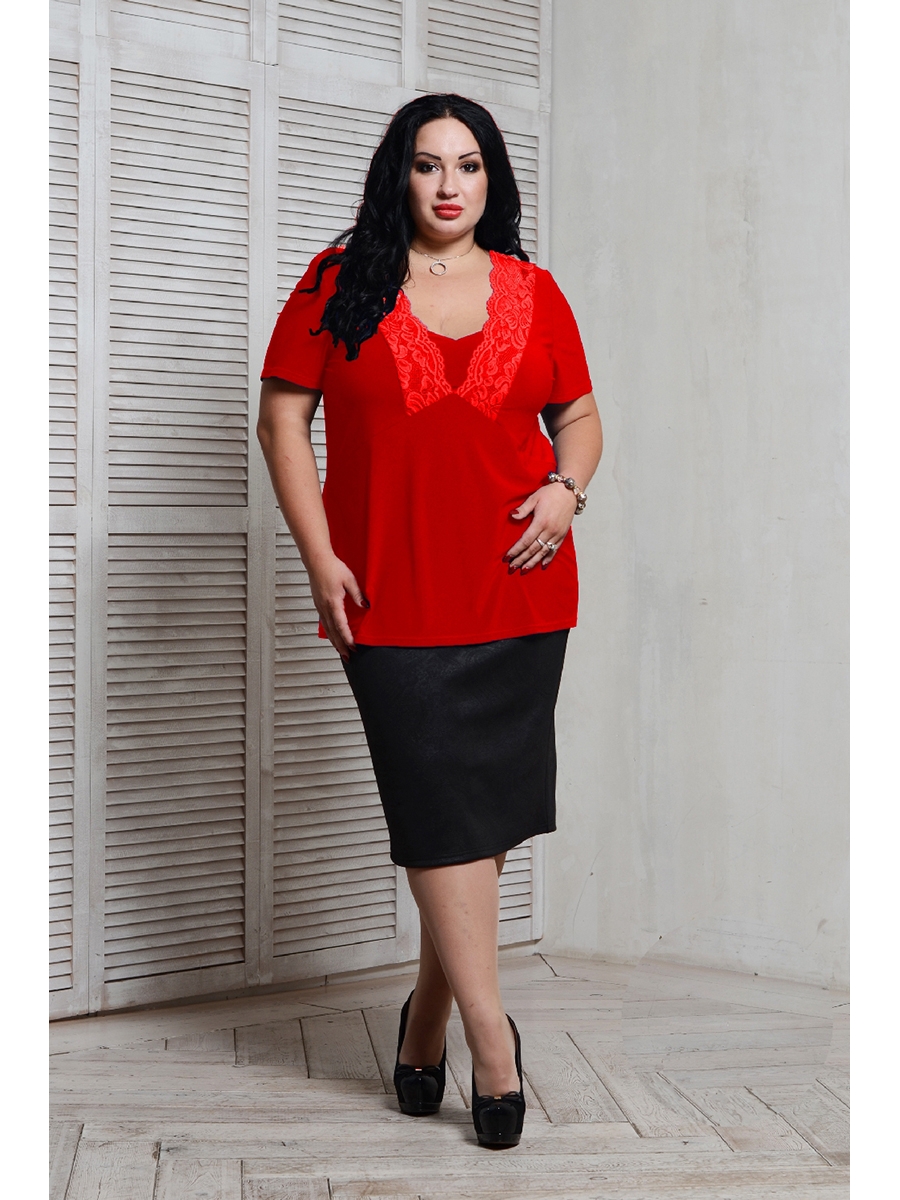 Элегантная блуза с V-образным вырезом украшенным кружевом.