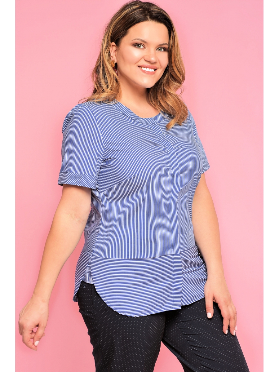 Оформить заказ →Прямого силуэта, с нагрудными вытачками, вырез горловины круглый с притачной стойкой-обтачкой. Притачная отделочная деталь по низу блузки с фигурными боковыми разрезами. Рукав втачной одношовный, с притачным манжетом. Застежка потайная на петли и пуговицы. Блузка дополнена декоративным элементом: вышивка надстрочная с бусинами и паетками.