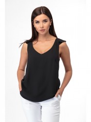 Линия горловины V образная, на спинке застёжка на навесную эластичную петлю и пуговицу.