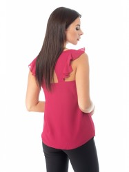 На грудные вытачки на передней части, спинка и перед двухслойные, спинка оформлена подрезными кокетками фантазийной формы, обрамлены рюшами по линии проймы.