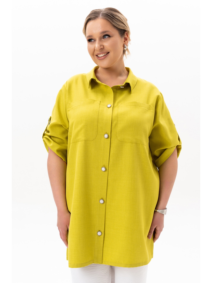 Элегантный дизайн рубашки подарит комфорт и уверенность в себе. Летняя рубашка в стиле сафари из костюмной ткани лен-твил. Жакет рубашечного кроя, свободного силуэта с кокеткой и встречной складкой по спинке, на полочках имеются 2 накладных кармана, воротник отложной, рукав втачной с патой длиной до локтя. В боковых швах есть разрезы. Это изделие больших размеров отлично подойдет на весну и лето для офиса, праздника, на каждый день, для вечеринки, для прогулок, для отдыха, для работы, для высоких и невысоких девушек и женщин, а также будущих мам. Жакет также поможет создать стильный и незабываемый нарядный образ с брюками, юбкой, а также с платьем, став любимой вещью в гардеробе!