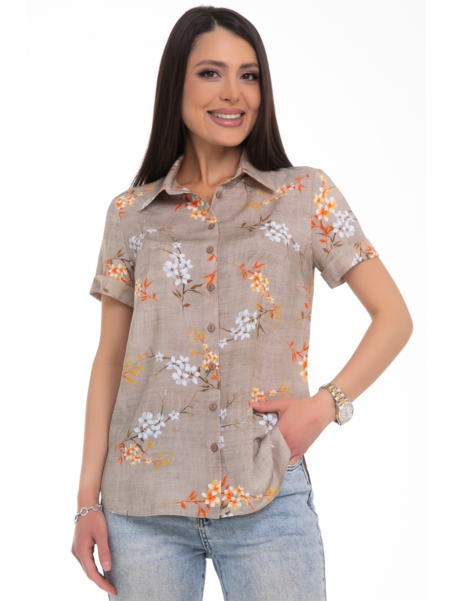 Возьмите в свой гардероб лучшую рубашку для самых запоминающихся приключений. Нежный принт превратит обычные прогулки в квест "Собрать ещё больше комплиментов". Рубашка с воротничком на стойке, спереди застёгивается на петли пуговицы. Немного приталенный силуэт. По спинке кокетка и небольшие вытачки. Рукава короткие с манжетом, который отворачивается наверх. Закругленные разрезы по бокам для удобства. Универсальная вещь, отлично сочетается с юбкой, брюками, джинсами.Модель выполнена из натуральной блузочной ткани высокого качества.