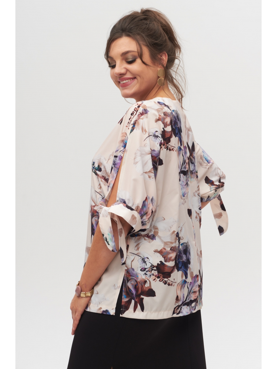 Блуза из легкой принтованной ткани. Прямой силуэт со цельно кроенным рукавом.