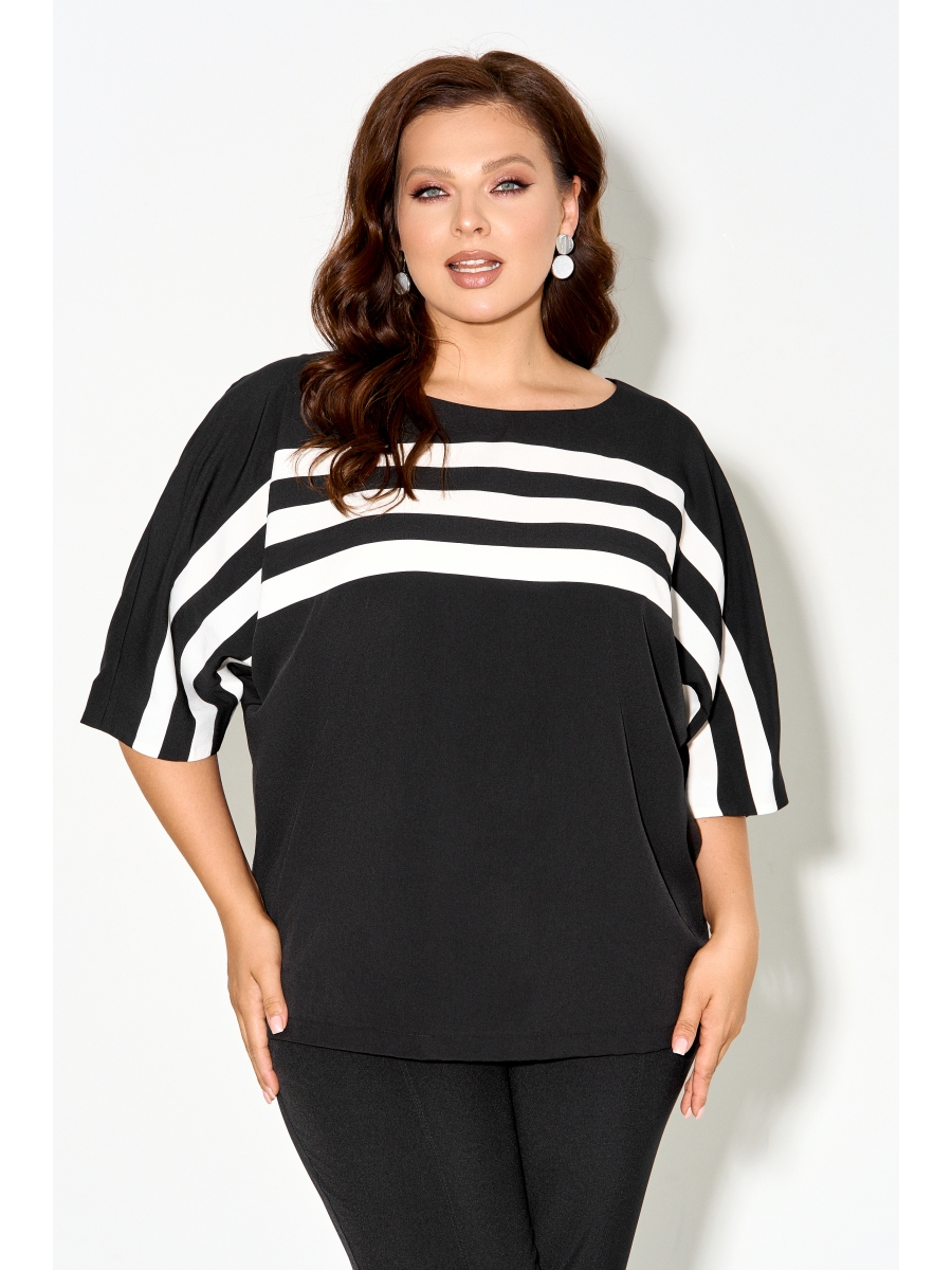 Женская базовая блуза свобоного силуэта выполнена из лёгкой струящейся ткани с черно-белыми полосками; рукава цельнокроенные; горловина округлой формы. Блуза полностью соответствует заявленному размеру. Пожалуйста, пользуйтесь таблицей обмеров готового изделия. Контрастные ткани устойчивы к перекрашиванию благодаря современным технологиям, что предотвращает смешиванию красок, сохраняя цвета даже при совместной стирке.