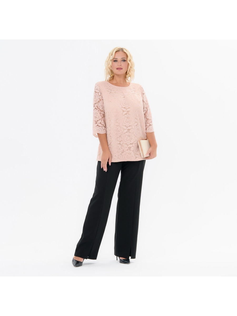 Кружевная блуза полуприлегающего силуэта. Вырез горловины округлый. Рукав 3/4.